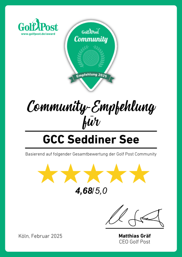 Mit großer Freude dürfen wir verkünden, dass der Golf- und Country Club Seddiner See mit dem Golf Post Community Award 2025 ausgezeichnet wurde!