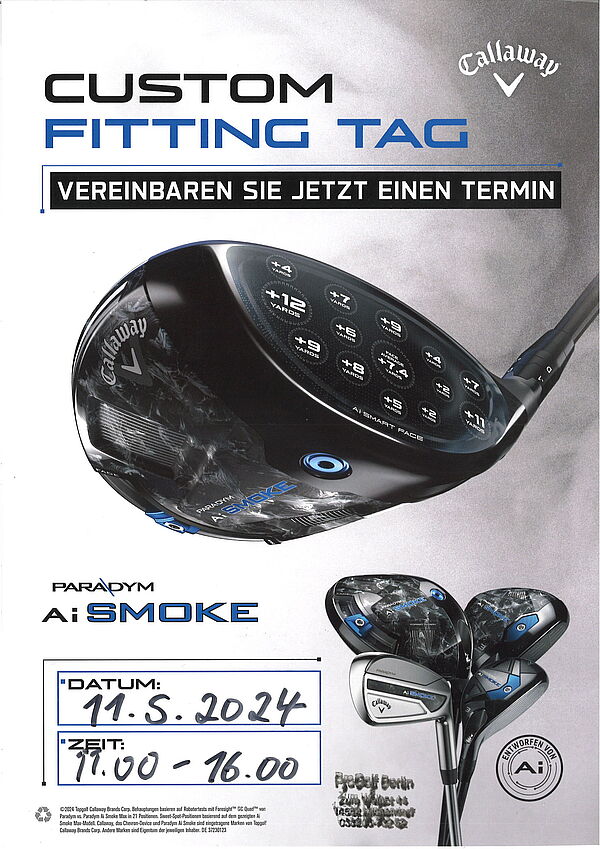Am 11. Mai 2024 von 10.00 Uhr bis 16.00 Uhr findet ein Fitting Tag von Callaway bei uns statt.