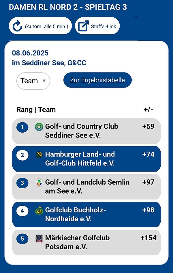 Was für ein Spieltag auf heimischem Boden! Unsere 1. Damenmannschaft konnte sich beim dritten DGL-Spieltag mit einer geschlossenen Teamleistung eindrucksvoll durchsetzen und feierte den ersten Tagessieg der Saison – und das deutlich: Mit 15 Schlägen Vorsprung auf den GC Hittfeld und ganzen 39 Schlägen auf den GC Buchholz-Nordheide war der Erfolg mehr als verdient. In der Tabelle klettern wir damit auf Platz 2 und bekommen eine erstes Gefühl dafür, was mit unserem neuen, jungen Team so alles möglich ist.