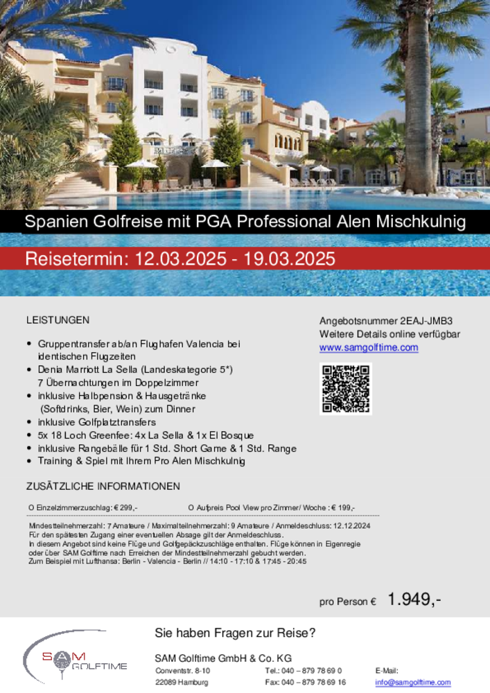 Vom 12. bis 19. März 2025 nimmt Sie unser Golflehrer Alen Mischkulnig auf eine weitere Reise mit nach Spanien.