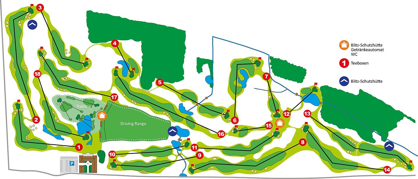 Bitte sehen Sie sich den Übersichtsplan genau an damit Sie sich richtig verhalten und die nächstgelegene Schutzhütte aufsuchen können, sollten Sie von einem Gewitter überrascht werden.