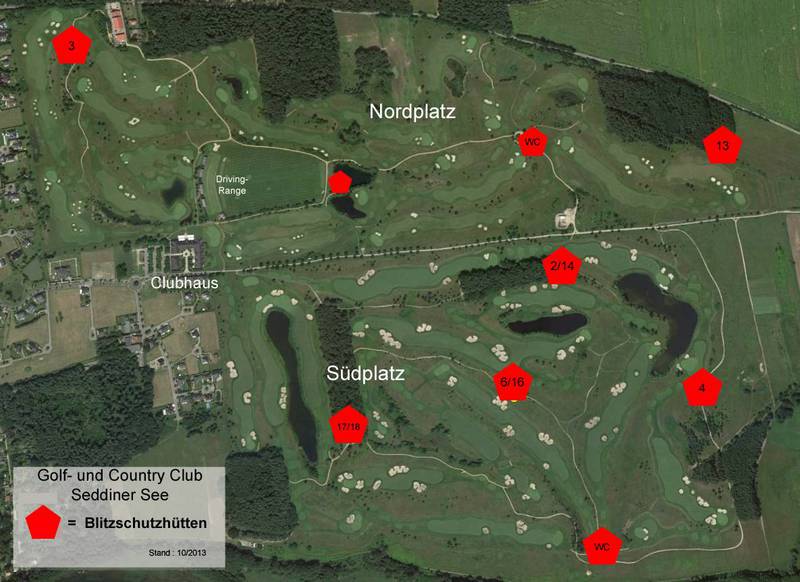 Auf dem Gelände des G&CC Seddiner See sind insgesamt 9 Schutzhütten vorhanden (fünf auf dem Südplatz und vier auf dem Nordplatz), die alle mit einer Blitzschutzvorrichtung und einem Ringerder ausgerüstet sind. Ferner werden die Blitzschutzeinrichtungen der Hütten turnusmäßig von einer Fachfirma gewartet.
